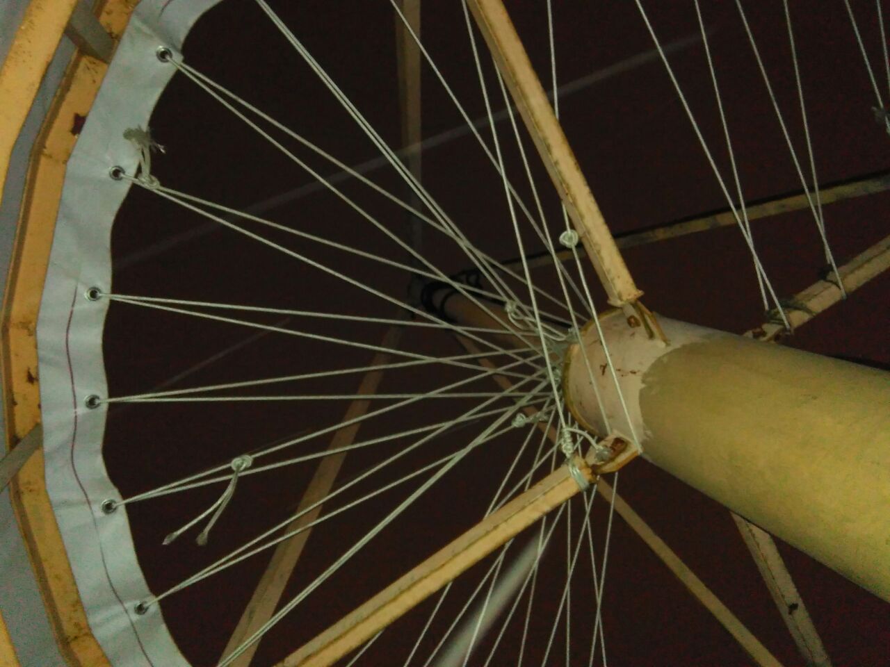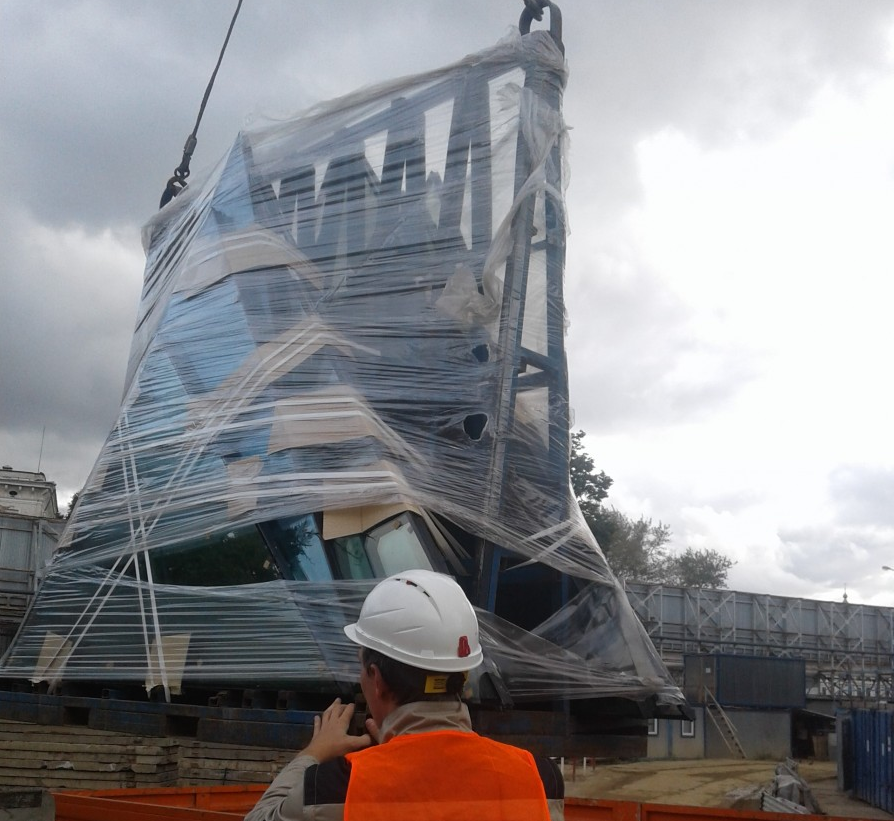 Сложная полукруглая конструкция на стропах.