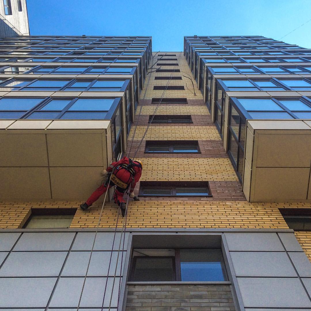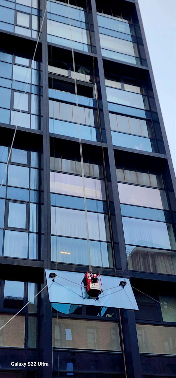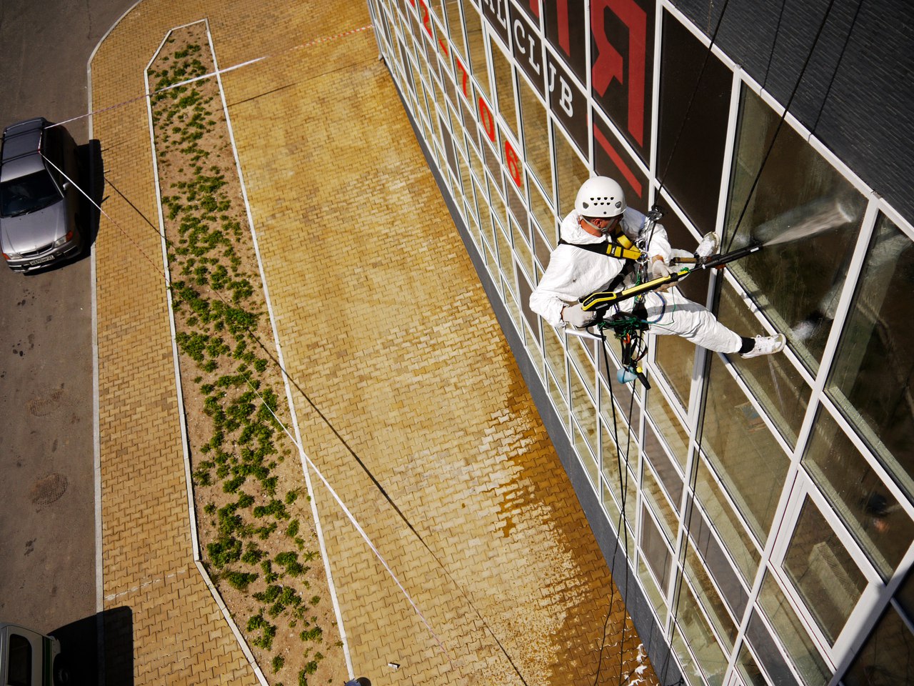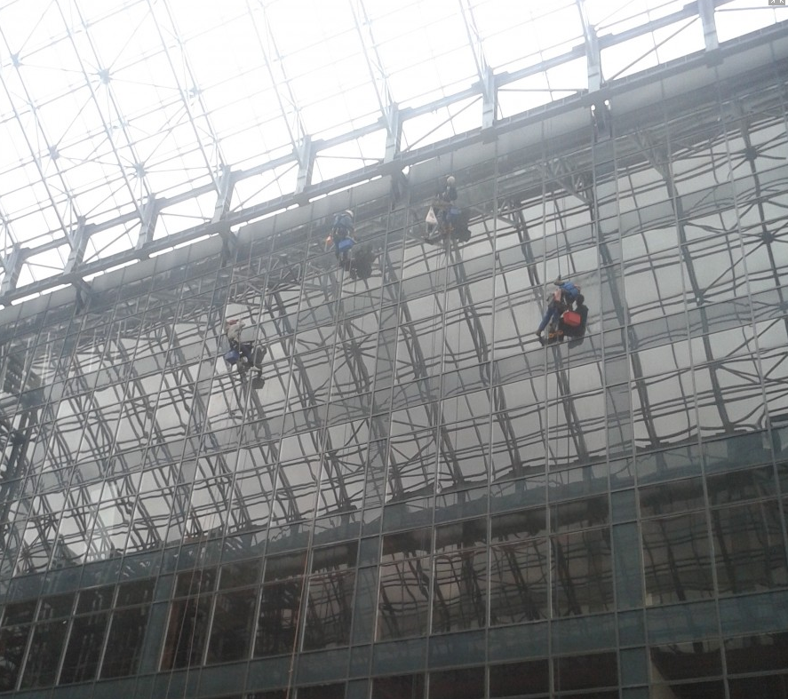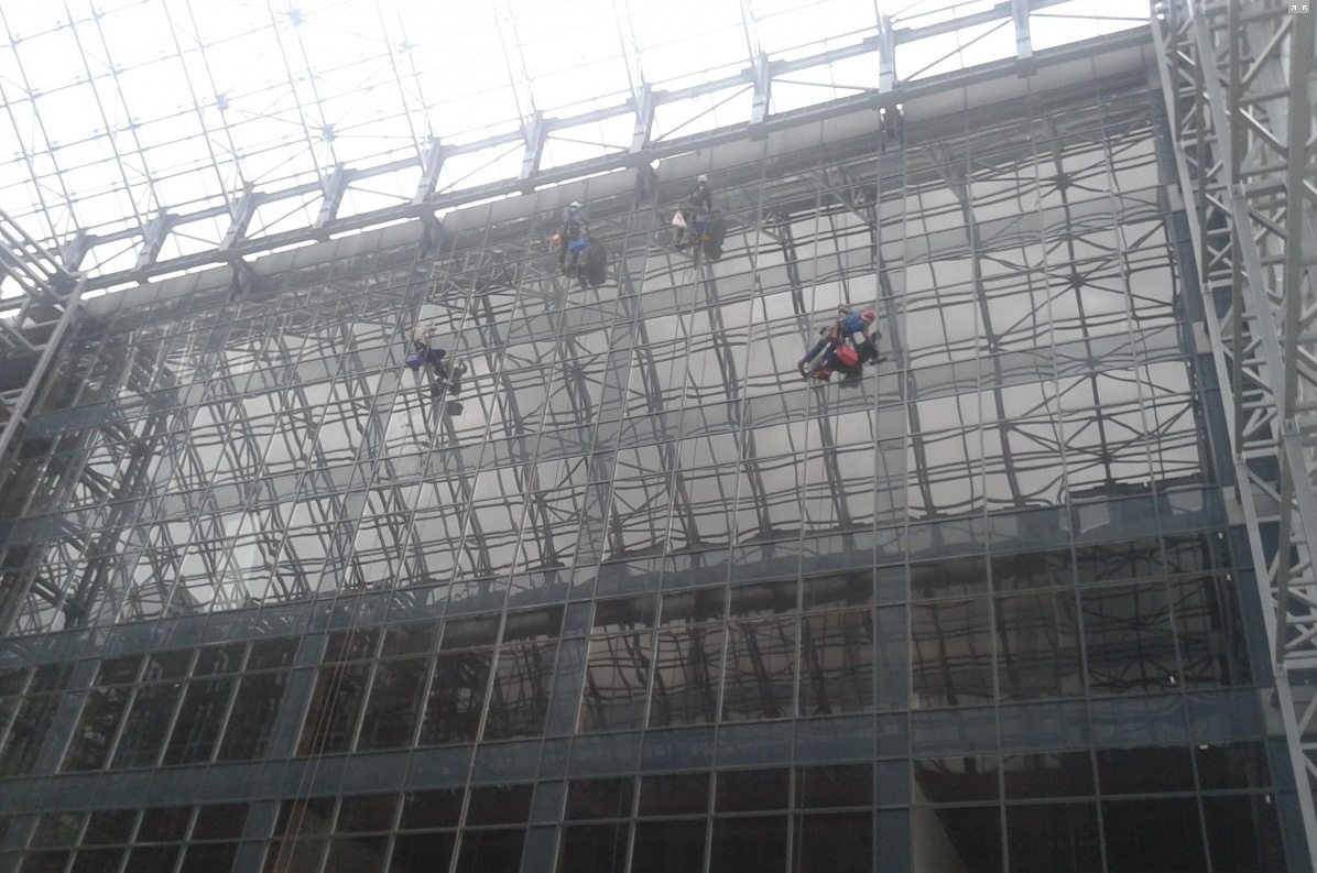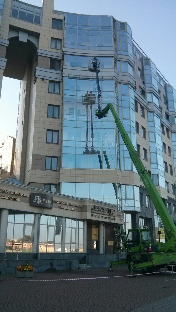 Мойка снаружи и внутри. Внутри здания сложная навеска, отрицательные углы.
