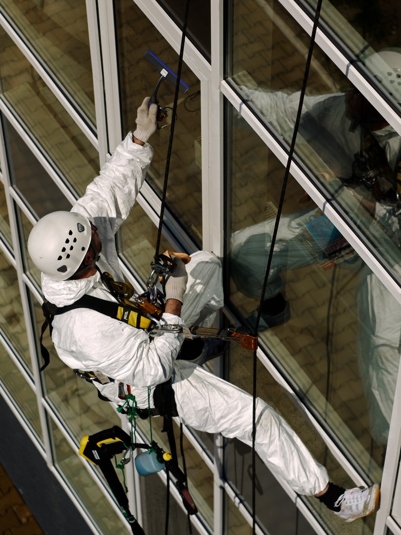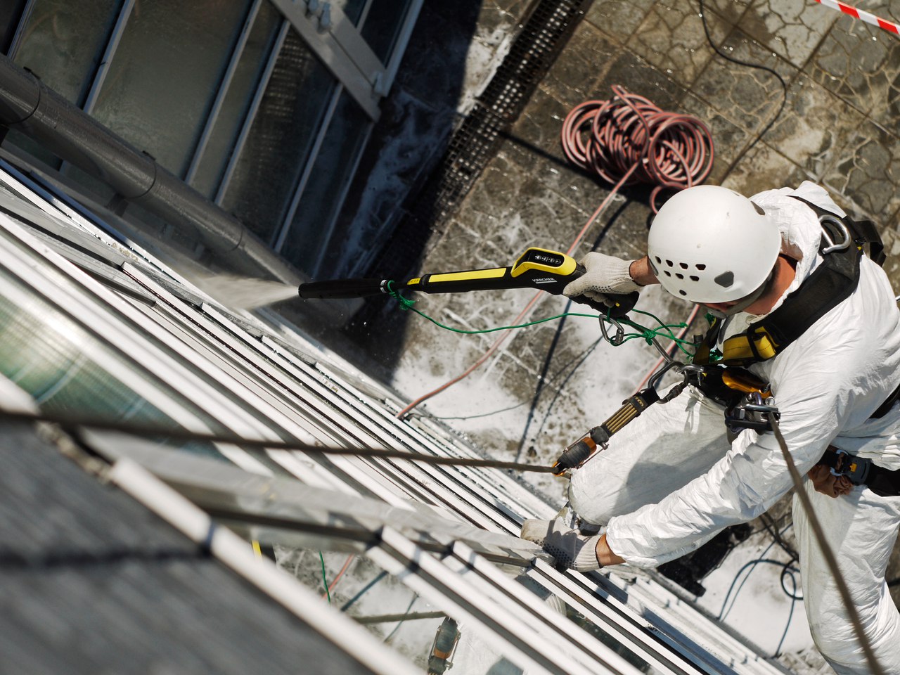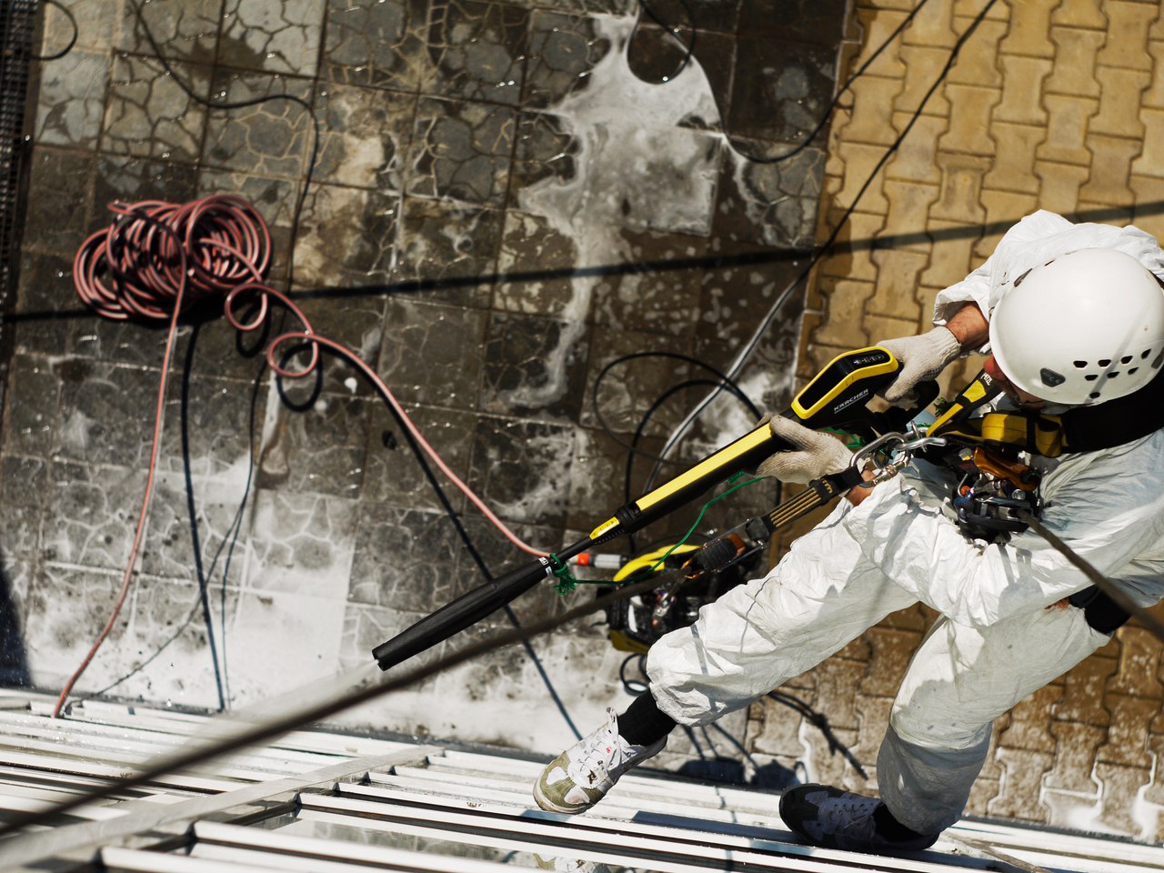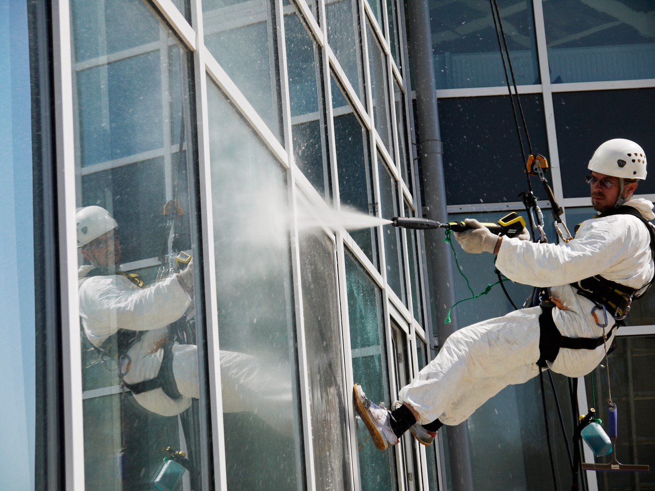 Мойка снаружи и внутри. Внутри здания сложная навеска, отрицательные углы.