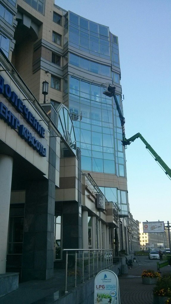 Стоимость "атмосферной" мойки (то есть обычной мойки от загрязнений, вызванных осадками) зависит в первую очередь от объемов. Также есть нюанс, что стеклянный фасад обойдется дешевле, чем мойка отдельных окон при аналогичной площади. Несколько примеров наших работ помогут соориентироваться по стоимости.
