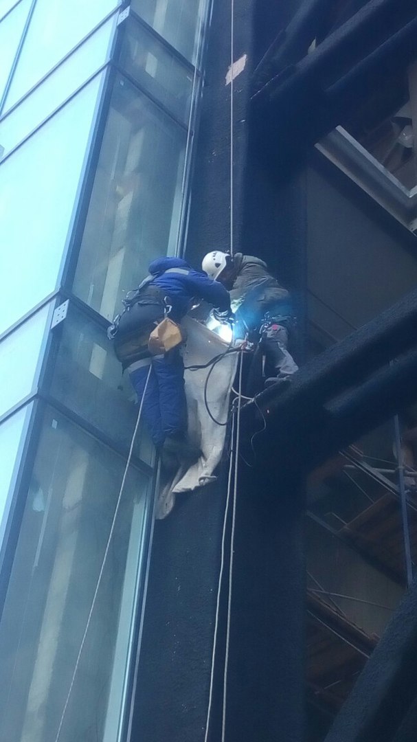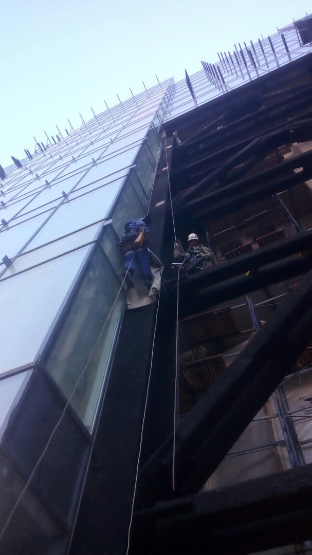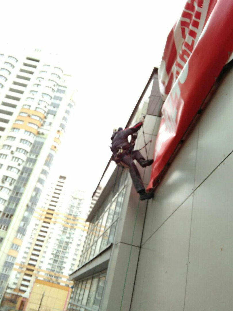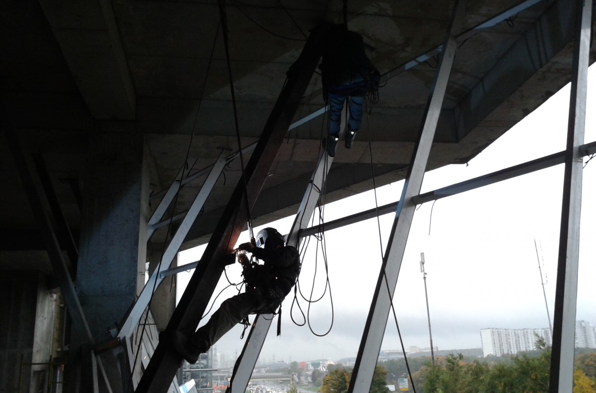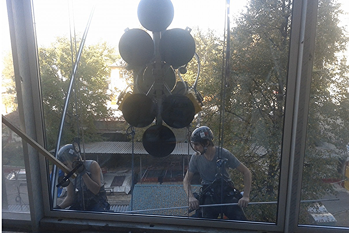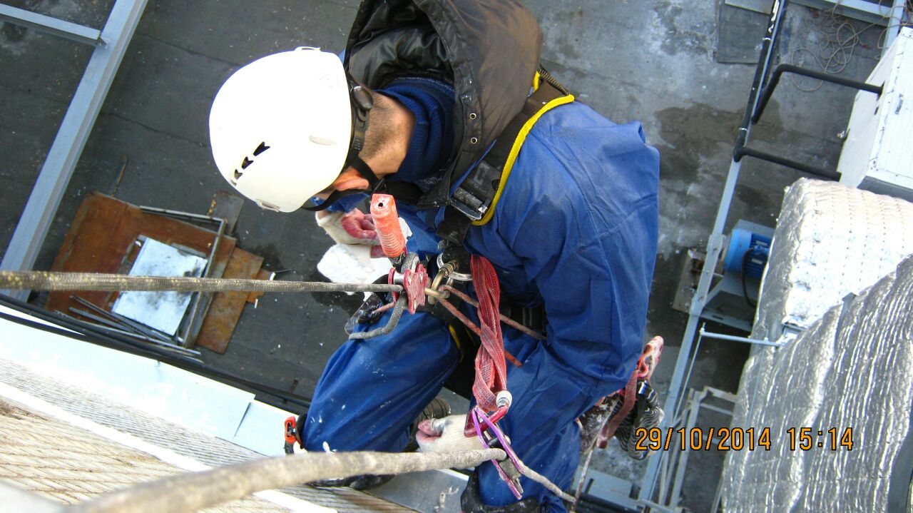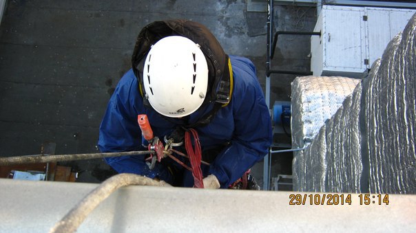 Работа выполнена 2 альпинистами и 4 монтажниками. Срок исполнения - 2 ночи.