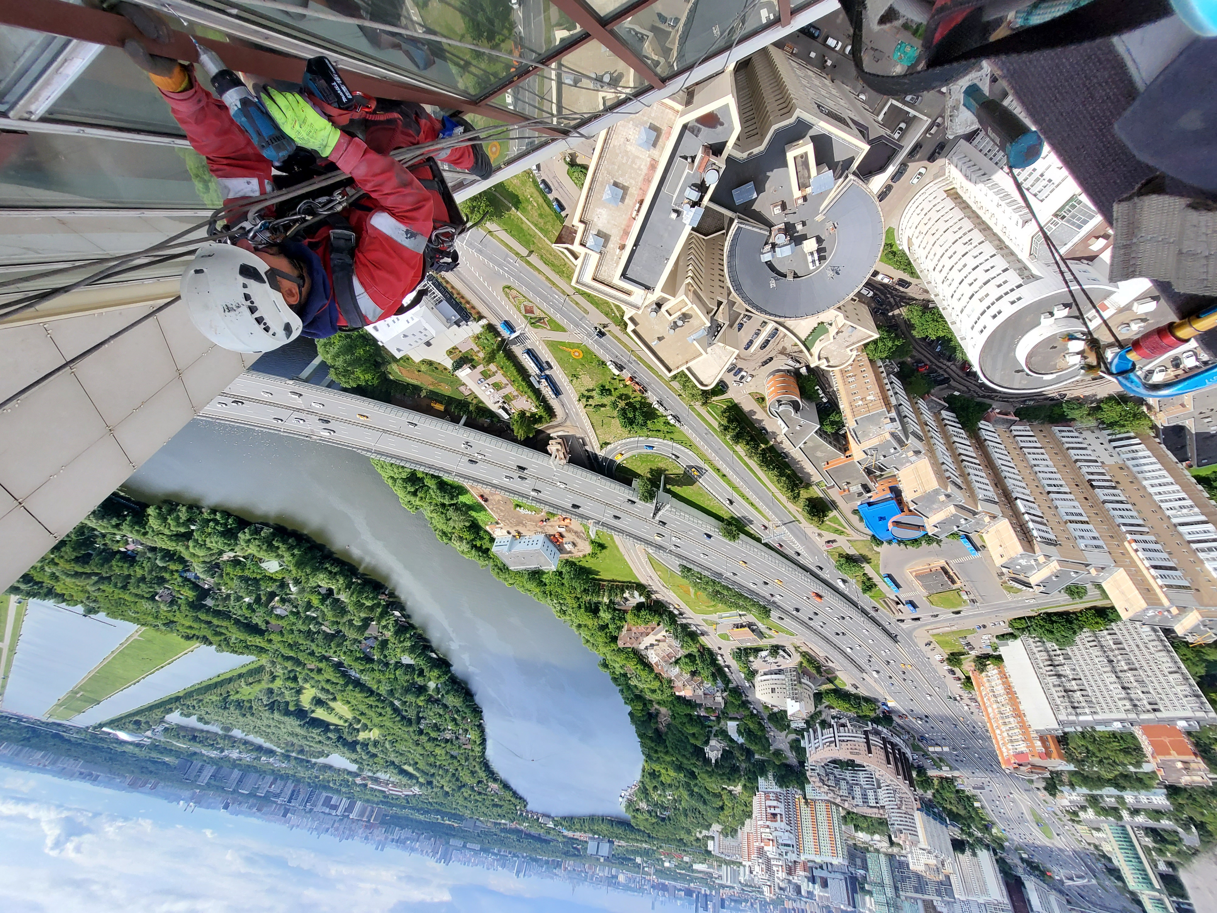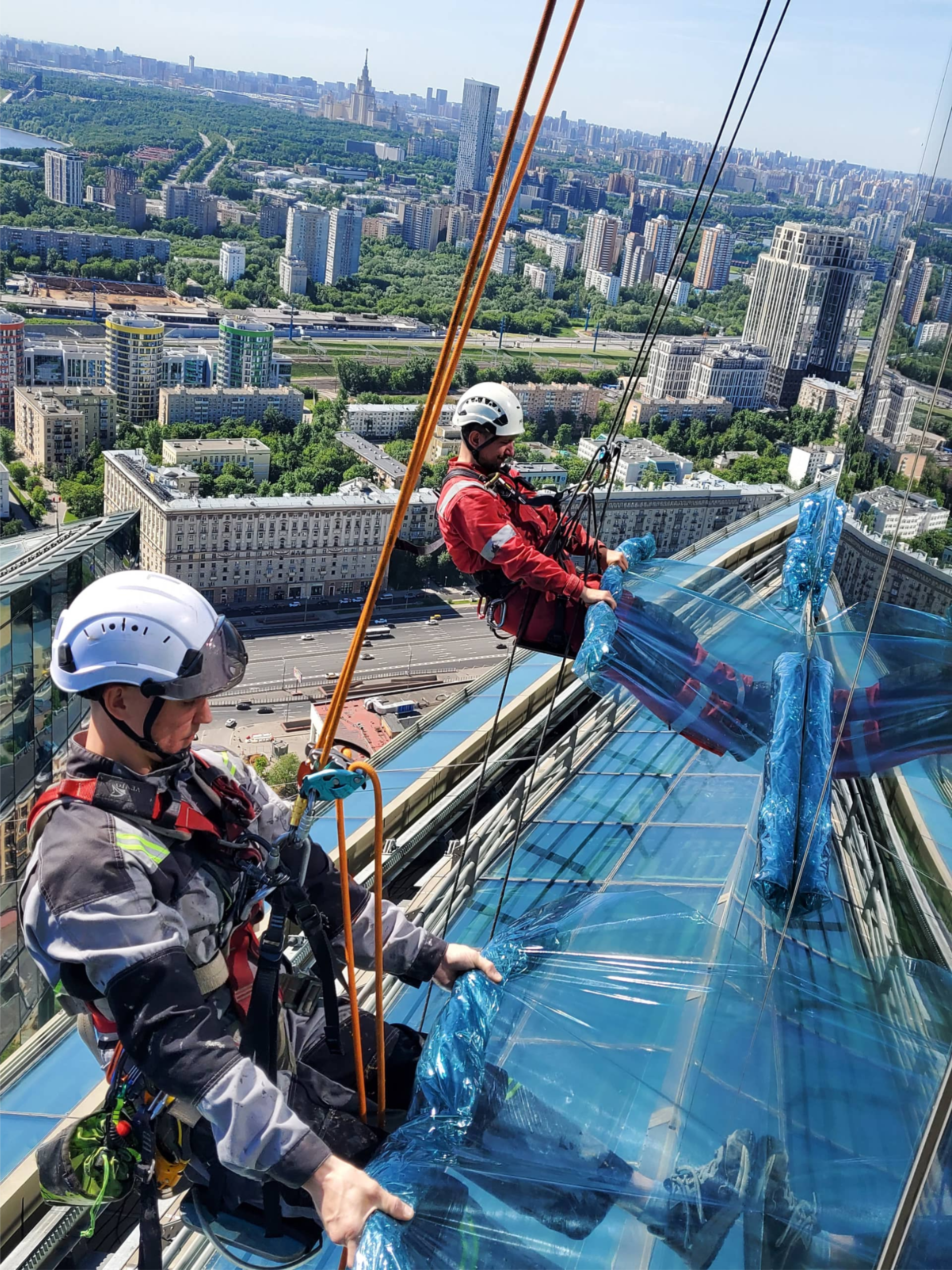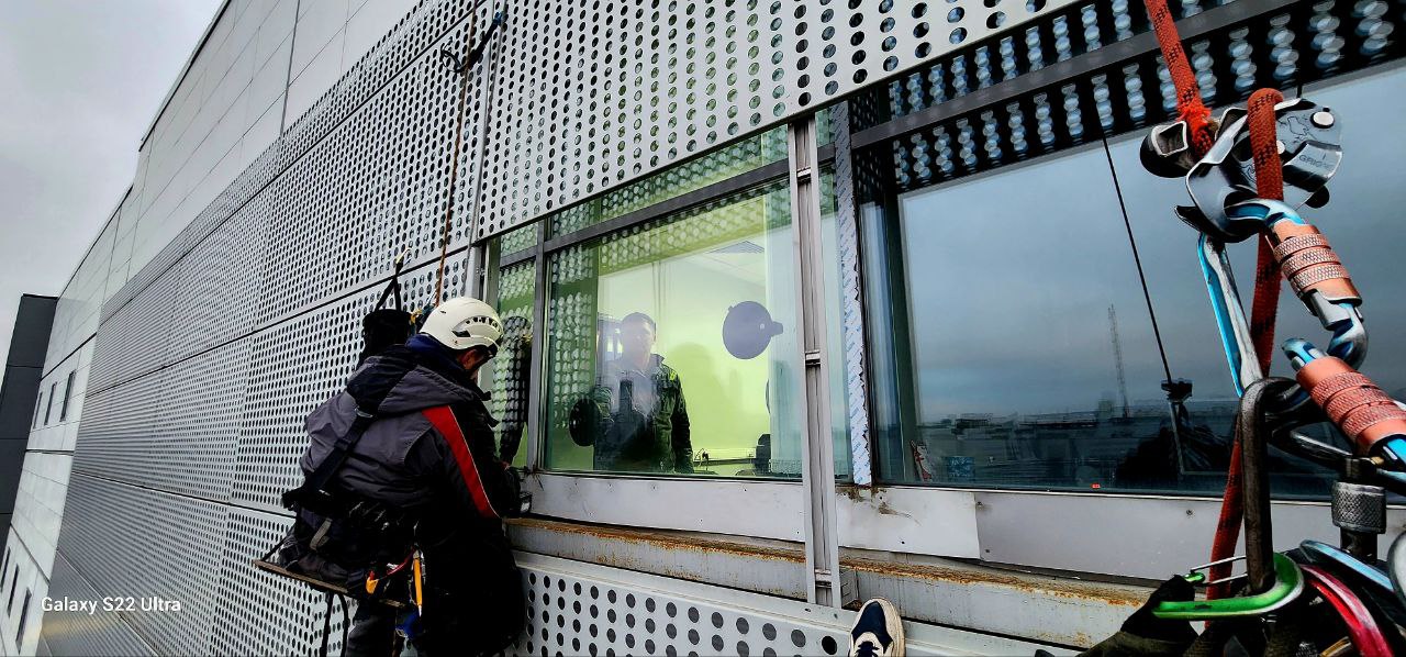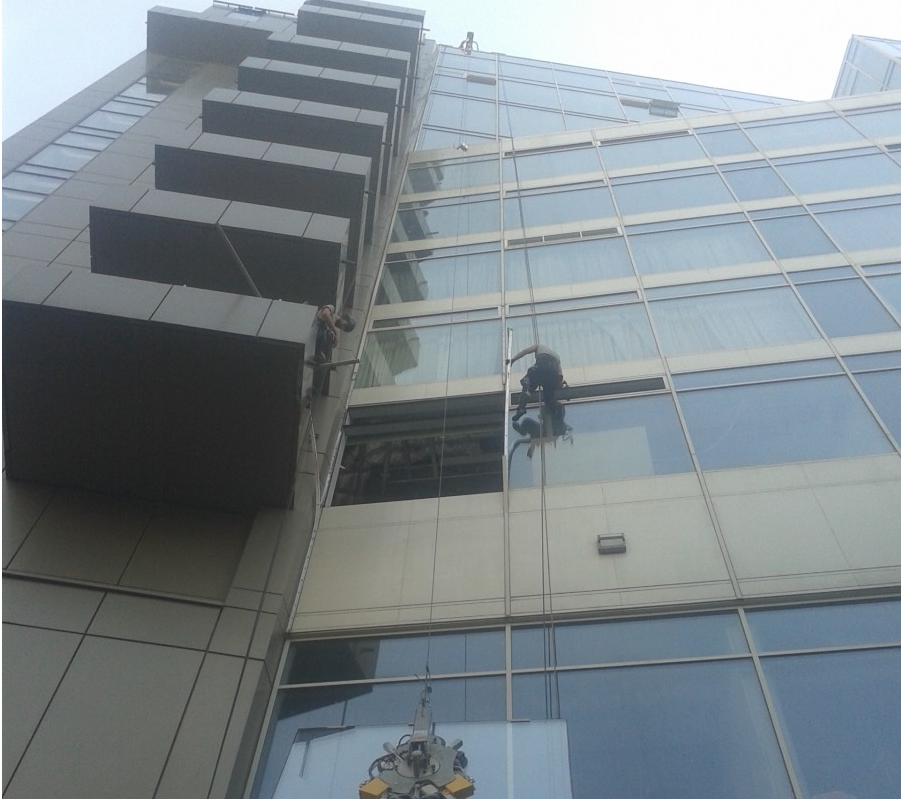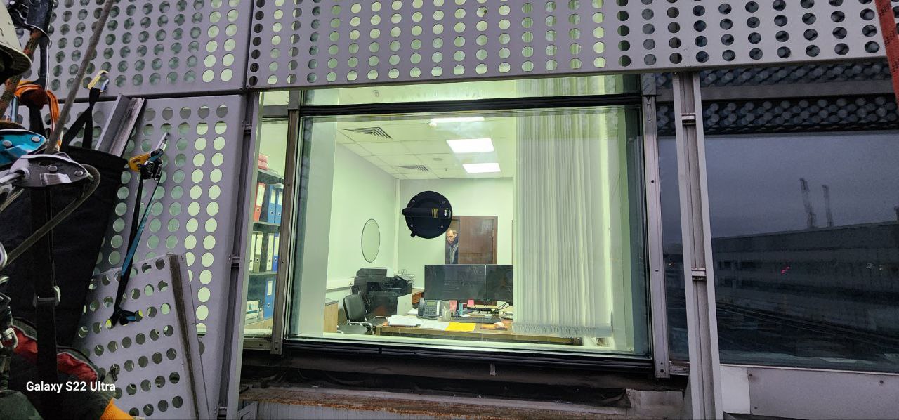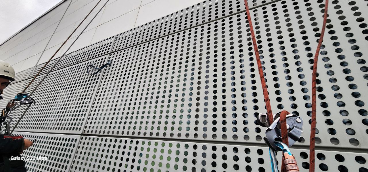 Работа выполнена 2 альпинистами и 4 монтажниками. Срок исполнения - 2 ночи.