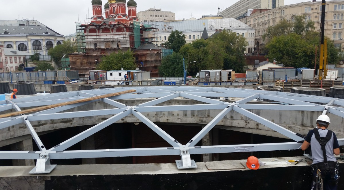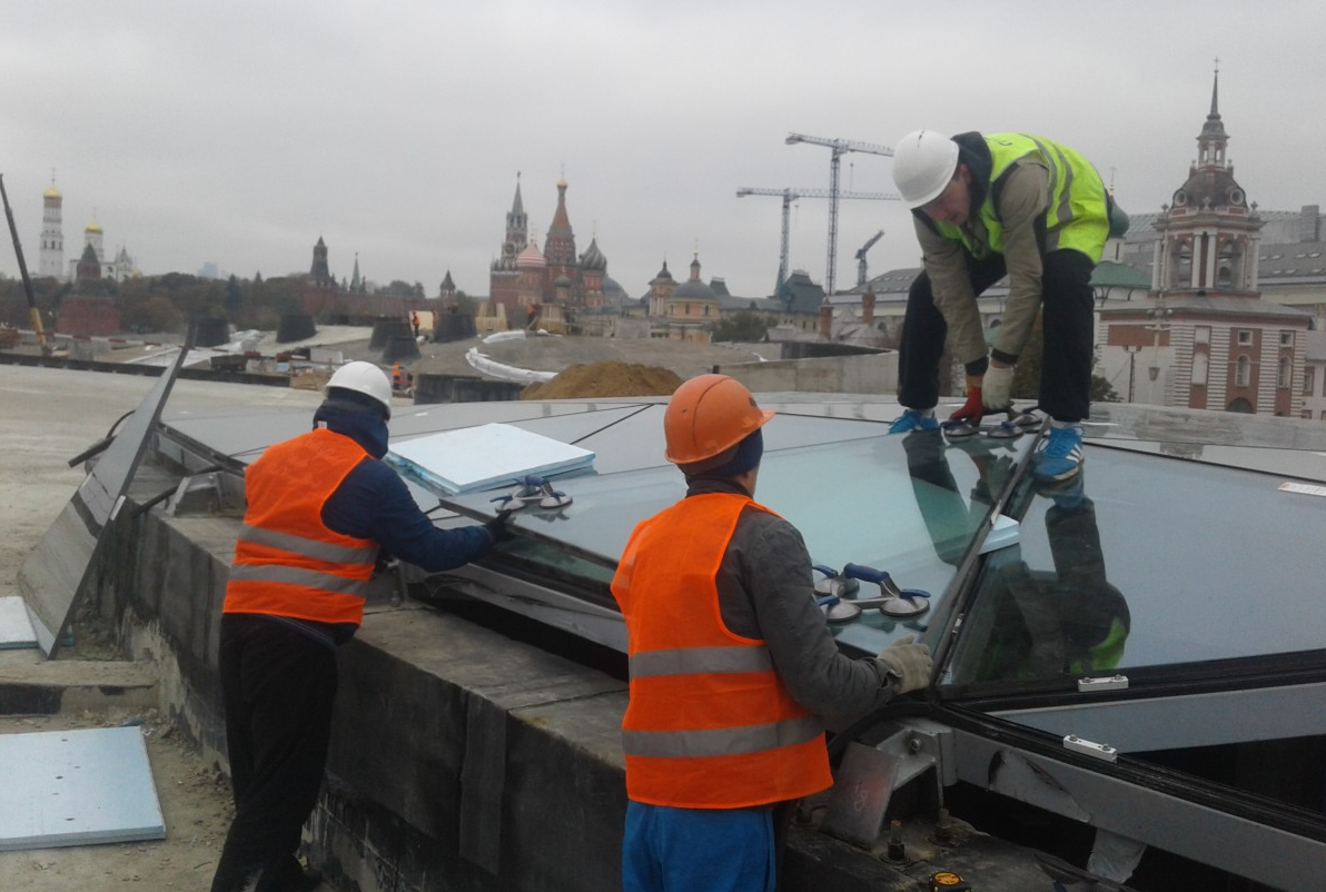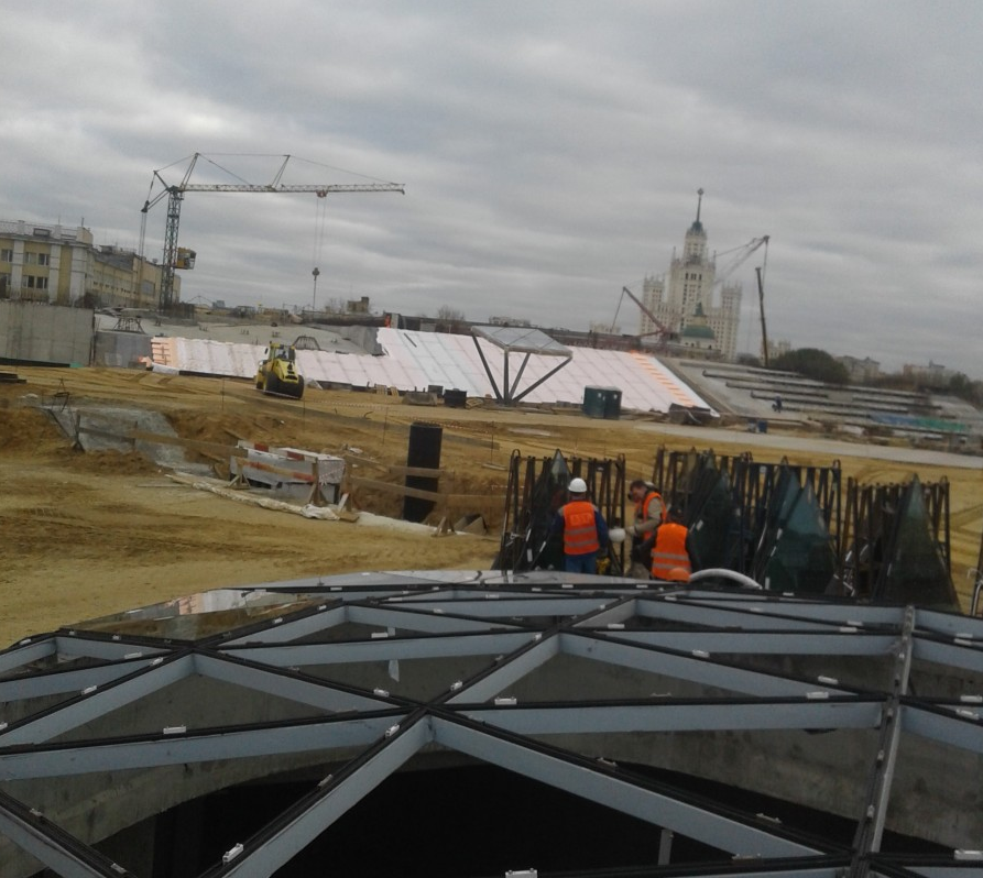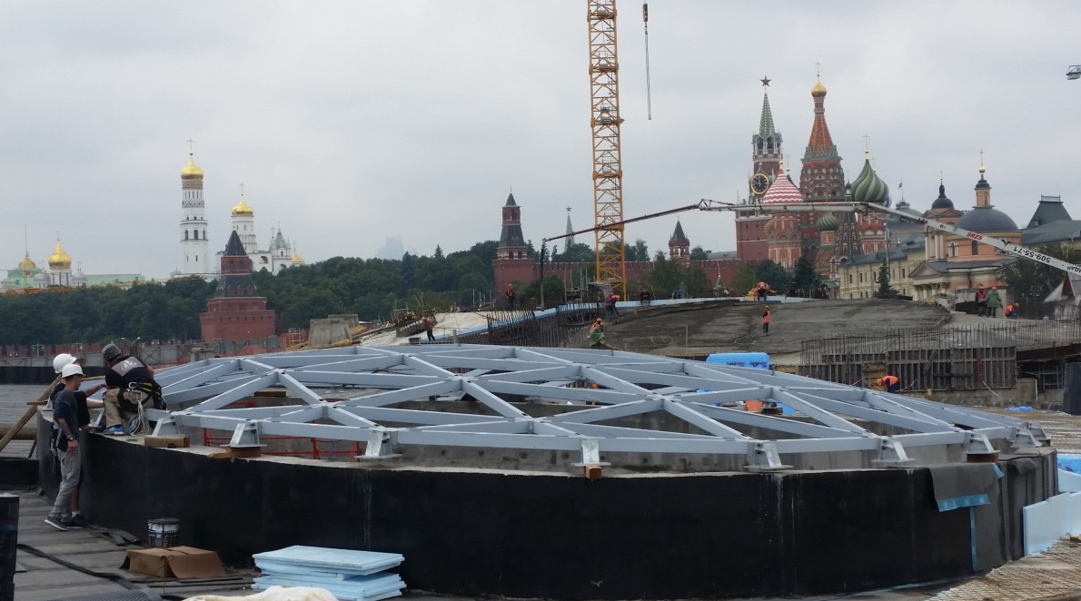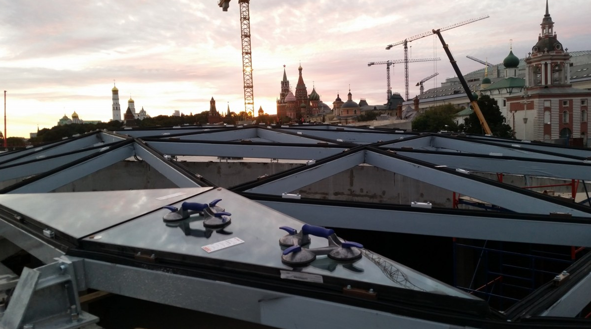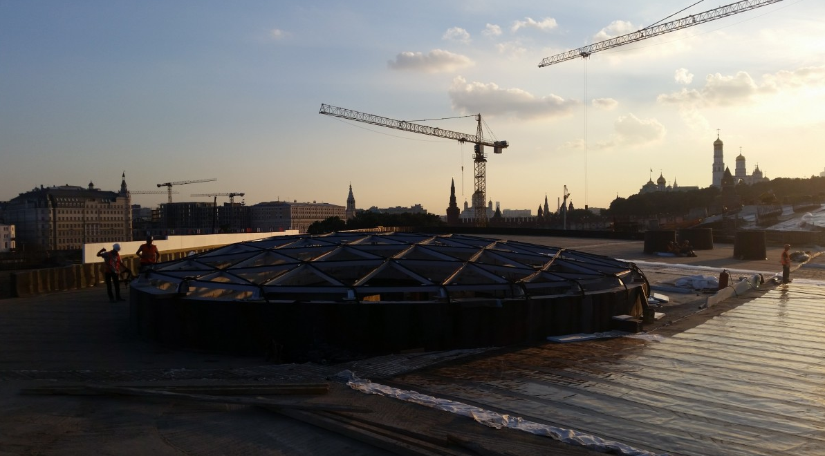 ПАРК ЗАРЯДЬЕ. МОНТАЖ СВЕТОПРОЗРАЧНОГО КУПОЛА