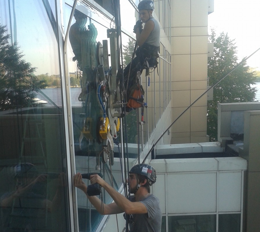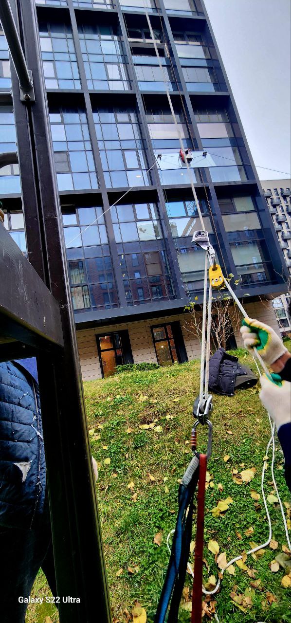 Подъем и монтаж остекления