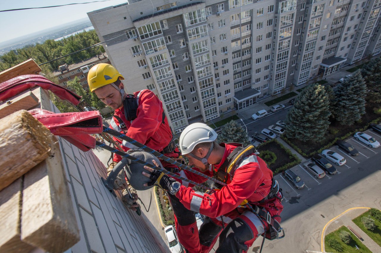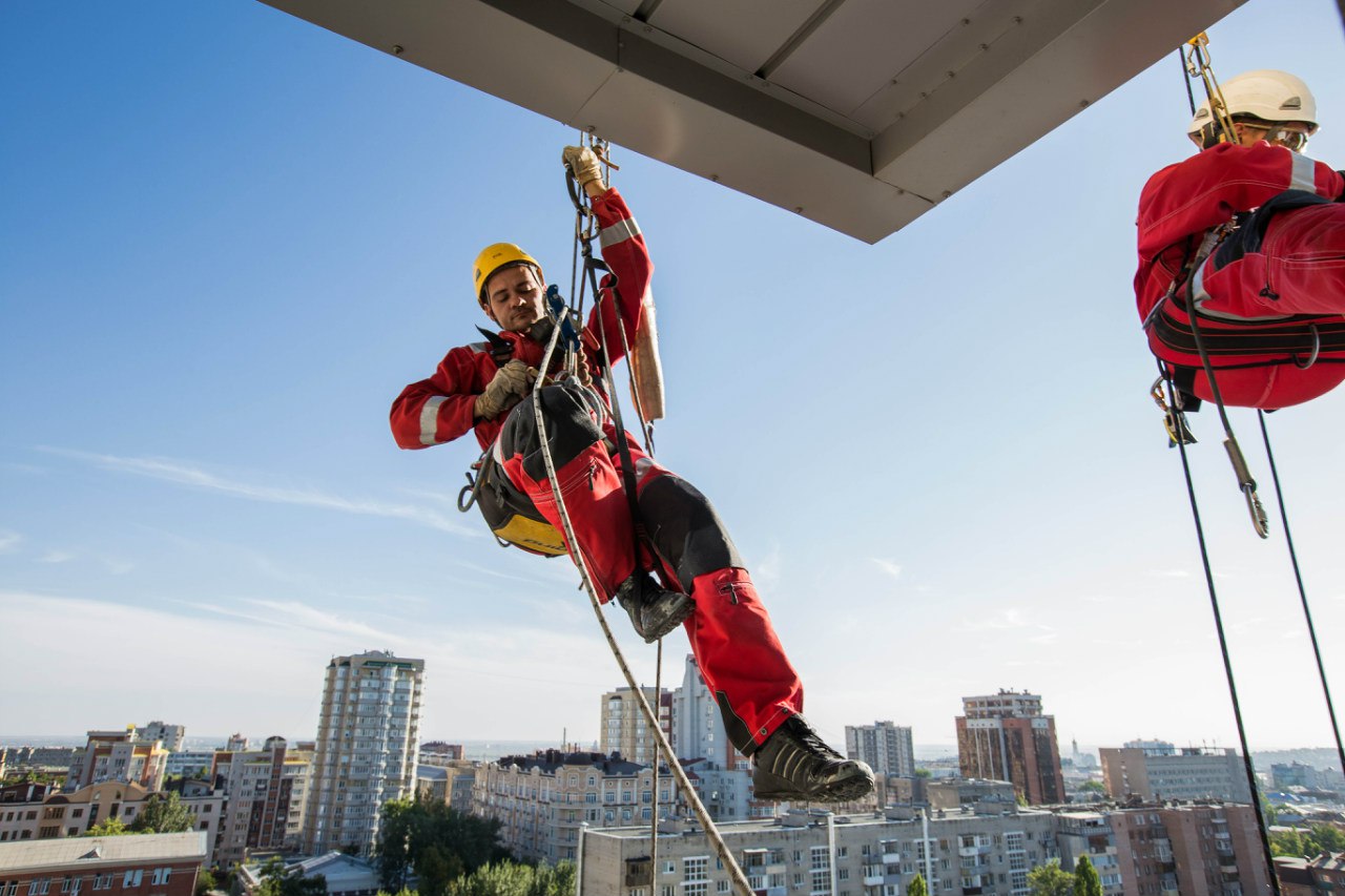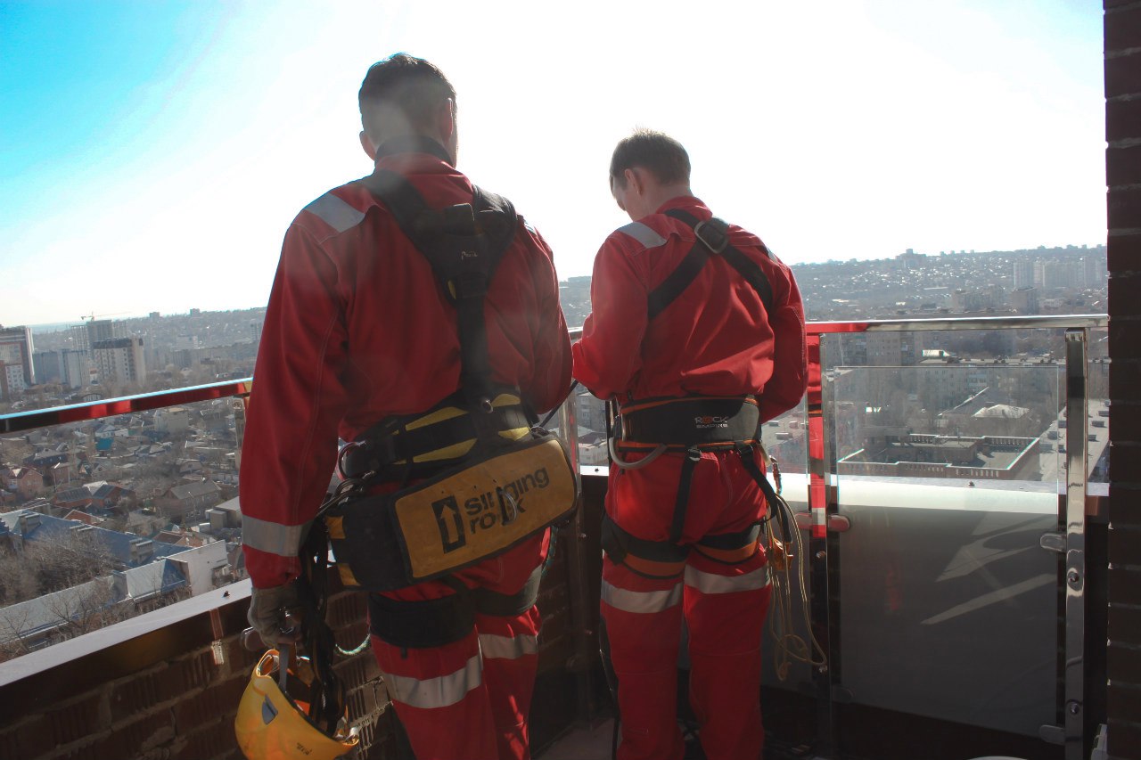 Работу выполнили 2 альпиниста и 3 монтажника.