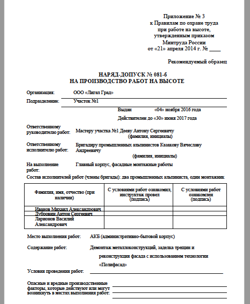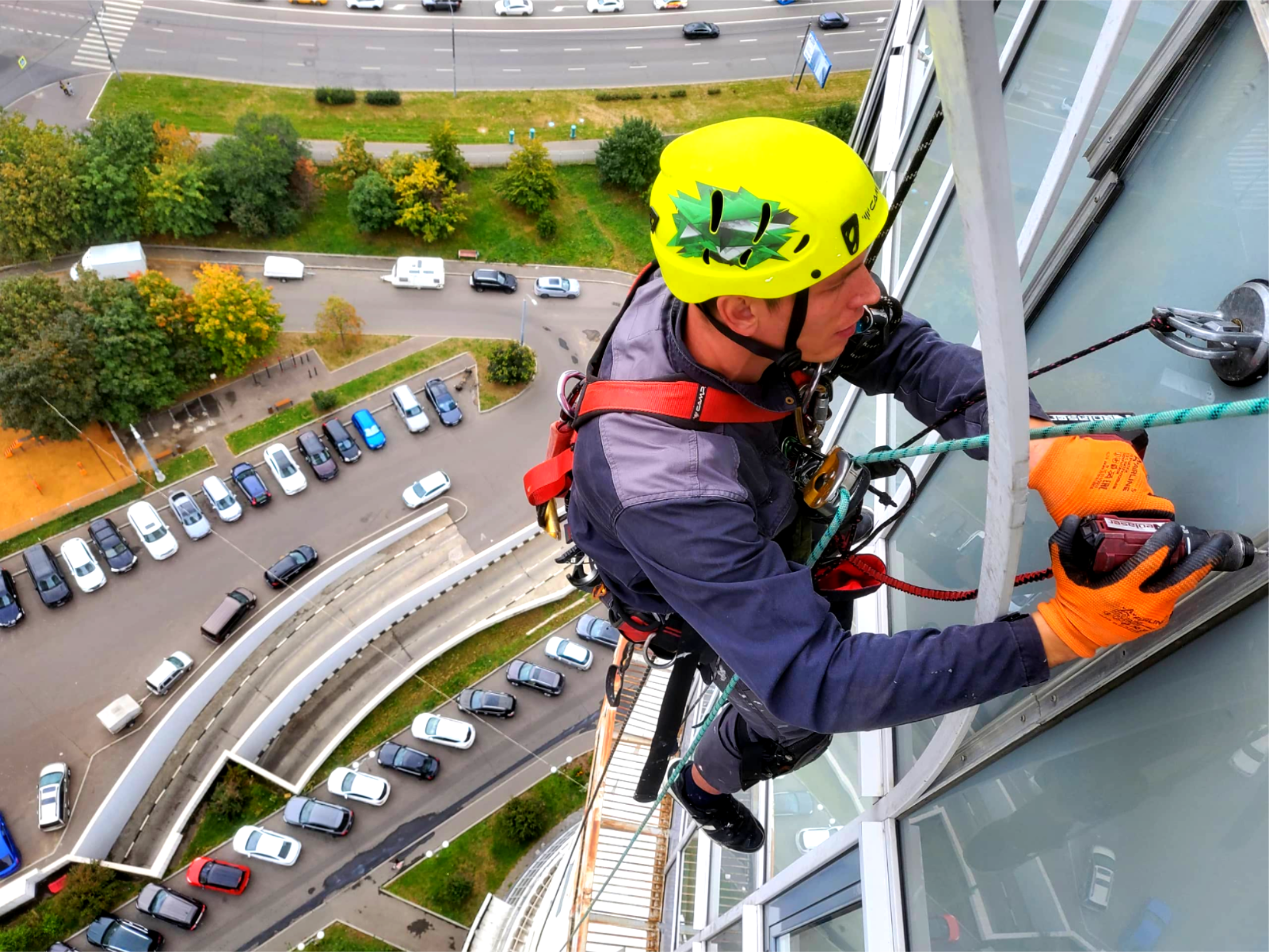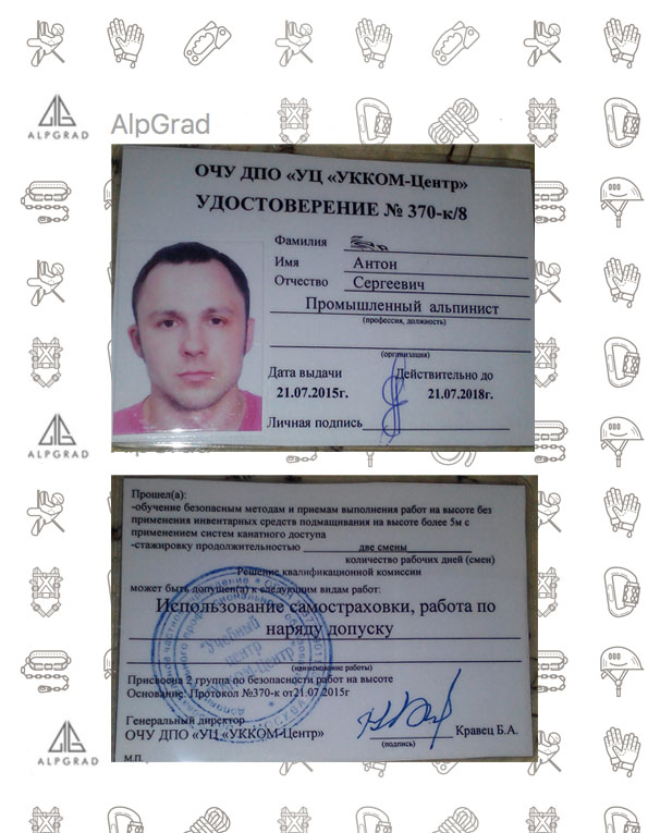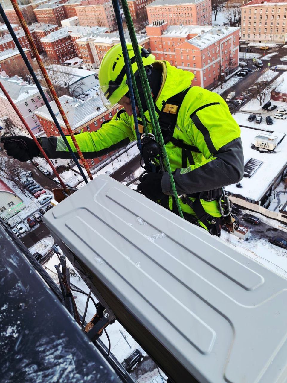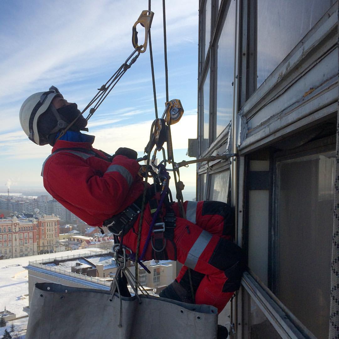 Работу выполнили 2 альпиниста и 3 монтажника.