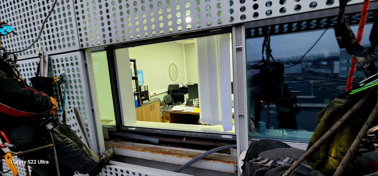 Производилась замена 4 секций остекления.