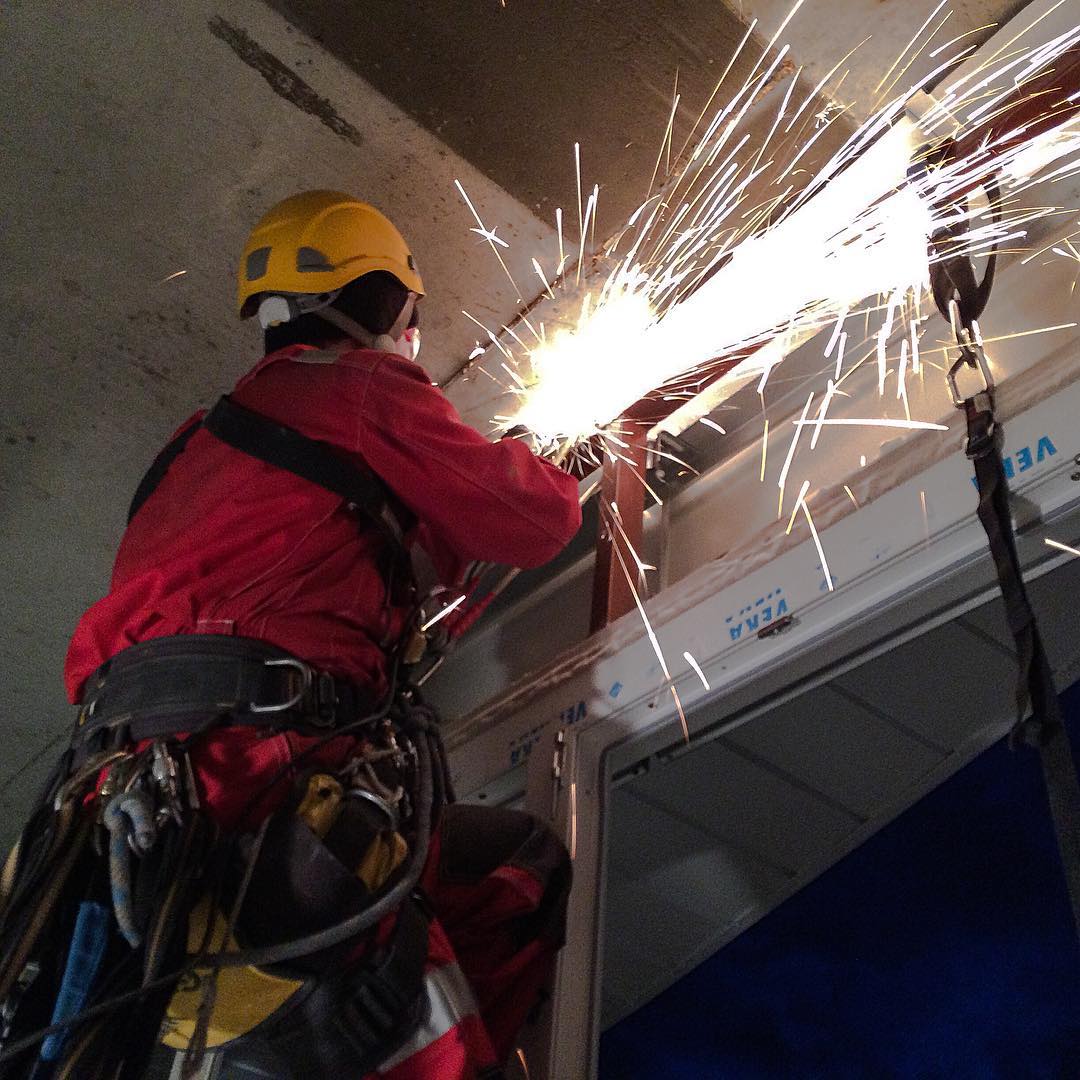 Работа выполнена 2 альпинистами и 4 монтажниками. Срок исполнения - 2 ночи.